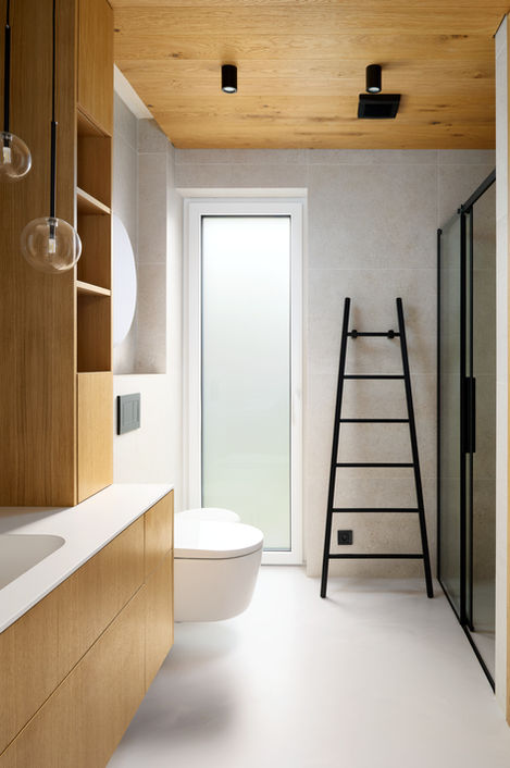 Schody je možné realizovat. Na nášlap se aplikuje litá stěrka, svislé plochy jsou dotmeleny a ošetřeny nátěrem stejného odstínu, vše je zalakováno společně s podlahou.